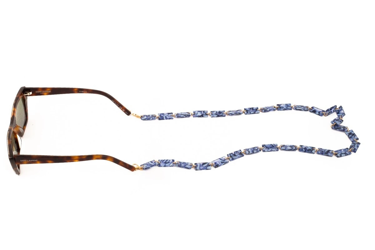 Catenella occhiali AIRPORT in Acetato colore Blu. Una catenella per occhiali in acetato molto modaiola realizzata dal brand Airport, euipaggiata con un apposito astuccio in microfibra. Ideale per chi vuole indossare il proprio occhiale con stile.