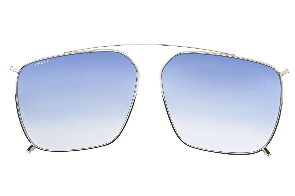 Clip sole Unisex KADOR Big 1 in metallo color Argento e lenti Azzurro sfumato. Una clip-on che permette di trasformare il tuo Kador Big line 1 in un occhiale da sole offrendoti un’ampia versatilità di utilizzo ed una protezione ottimale. Le lenti sfumate di questa clip-on sono ideali per situazioni in cui l’intensità della luce arriva sull’occhio con angolazioni differenti: la parte più scura della lente assorbe la luce più intensa, mentre la parte inferiore della lente, più chiara, entra in gioco quando l’intensità della luce diminuisce.