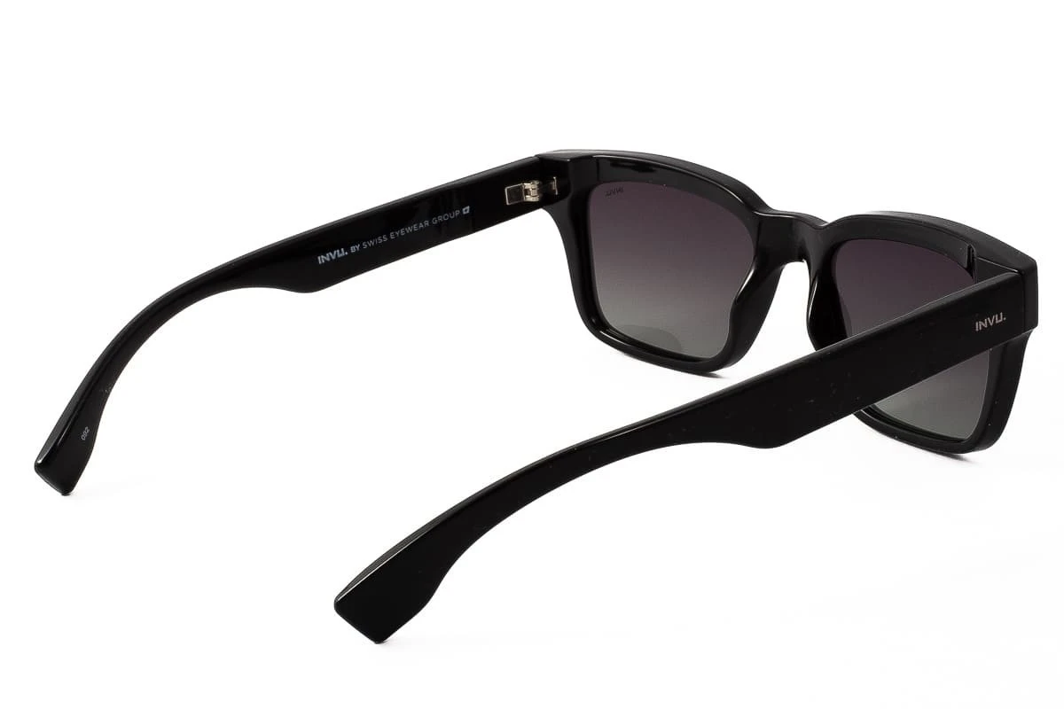Occhiali da sole Unisex INVU in Plastica con lenti di colore Grigio sfumato Il colore di questi occhiali carismatici, versatili ed essenziali si adatta ad ogni stile e li rende intramontabili. La forma classica di questa montatura è molto versatile e si addice a tutte le forme di viso. Le lenti sfumate di questi occhiali da sole sono ideali per situazioni in cui l’intensità della luce arriva sull’occhio con angolazioni differenti: la parte più scura della lente assorbe la luce più intensa, mentre la parte inferiore della lente, più chiara, entra in gioco quando l’intensità della luce diminuisce. Inoltre, la resistenza dei materiali e gli accorgimenti costruttivi garantiscono un’ottima funzionalità dell’occhiale ed una lunga durata nel tempo. Invu by Swiss Eyewear Group realizza montature molto modaiole, con filtri polarizzati e protezione UV, l’ottimo prezzo li rende ideali per chi vuole un occhiale alla moda senza spendere troppo.