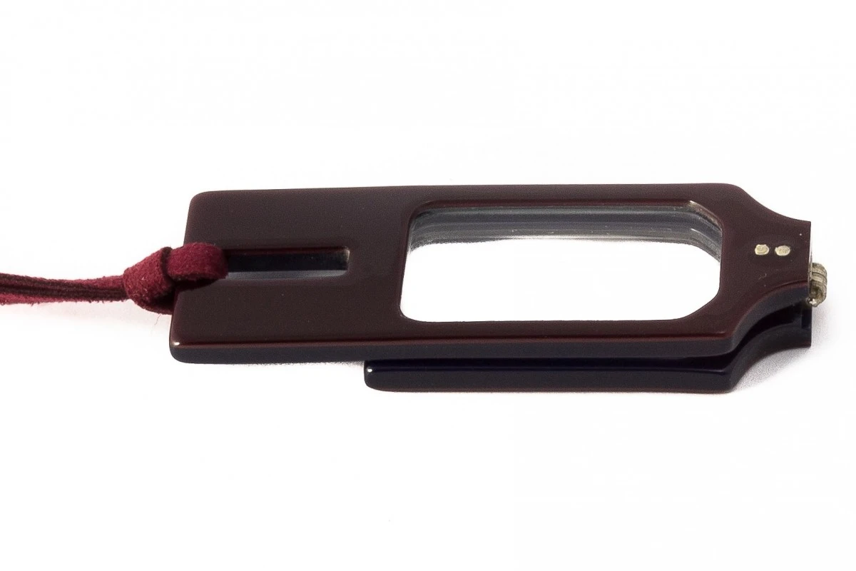 Occhiali da lettura pieghevoli, senza stanghette con collana, premontati con lenti di gradazione + 2,50, ideali per chi vuole avere gli occhiali da lettura sempre a portata di mano grazie al comodo cordino per appenderli al collo. I dettagli sono molto curati ed i materiali sono di ottima qualità. Questa collezione è stata realizzata dalla celebre designer Caroline Abram.